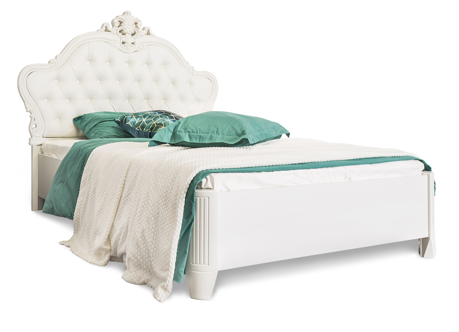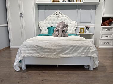 Кровать Мишель - это островок классики в современном доме. Высокое изголовье в классическом резном багете дополнено мягкой вставкой из экокожи в каретной стяжке.