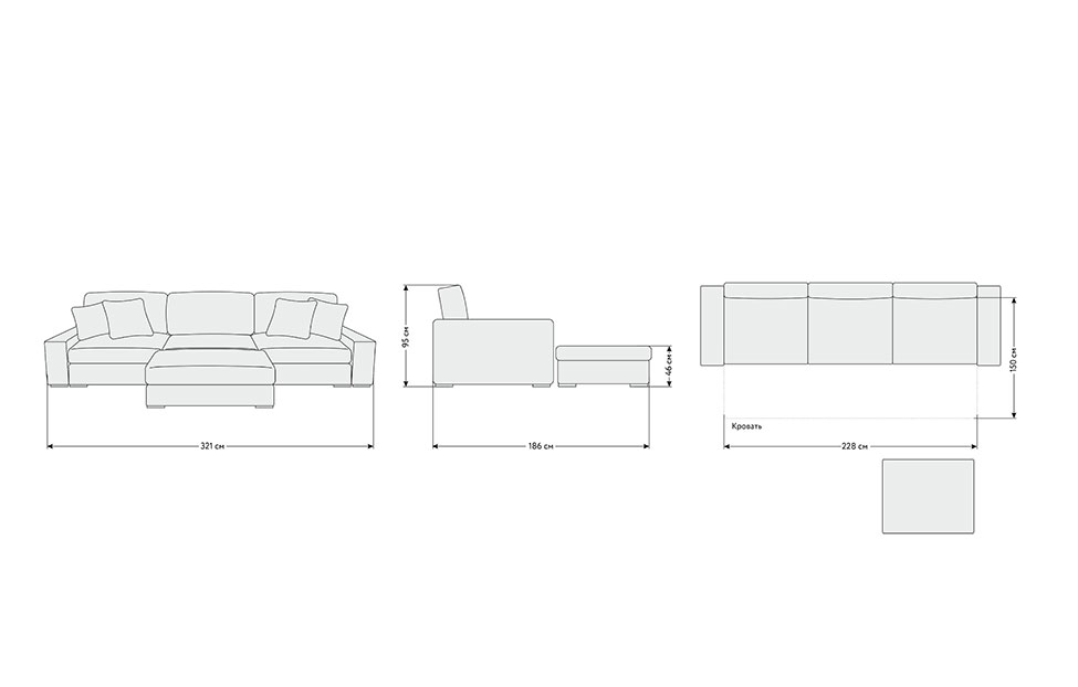 В пуфе есть подъемный механизм и короб для белья, в самом диване также есть просторный ящик для белья;