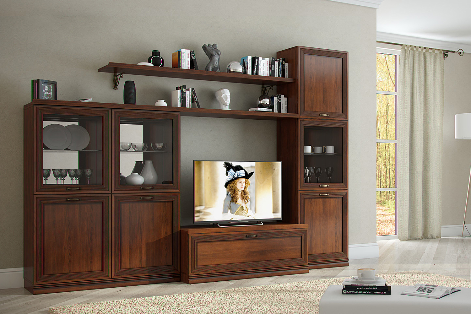 Гостиная Адажио понравится семейным людям, ценителям классики и традиций. Она создана для уютных вечеров с близкими людьми, размеренному чтению любимых книг и просто приятных кинопросмотров за кружкой чая.