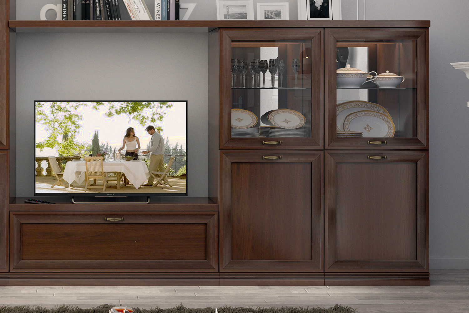 Гостиная Адажио понравится семейным людям, ценителям классики и традиций. Она создана для уютных вечеров с близкими людьми, размеренному чтению любимых книг и просто приятных кинопросмотров за кружкой чая;