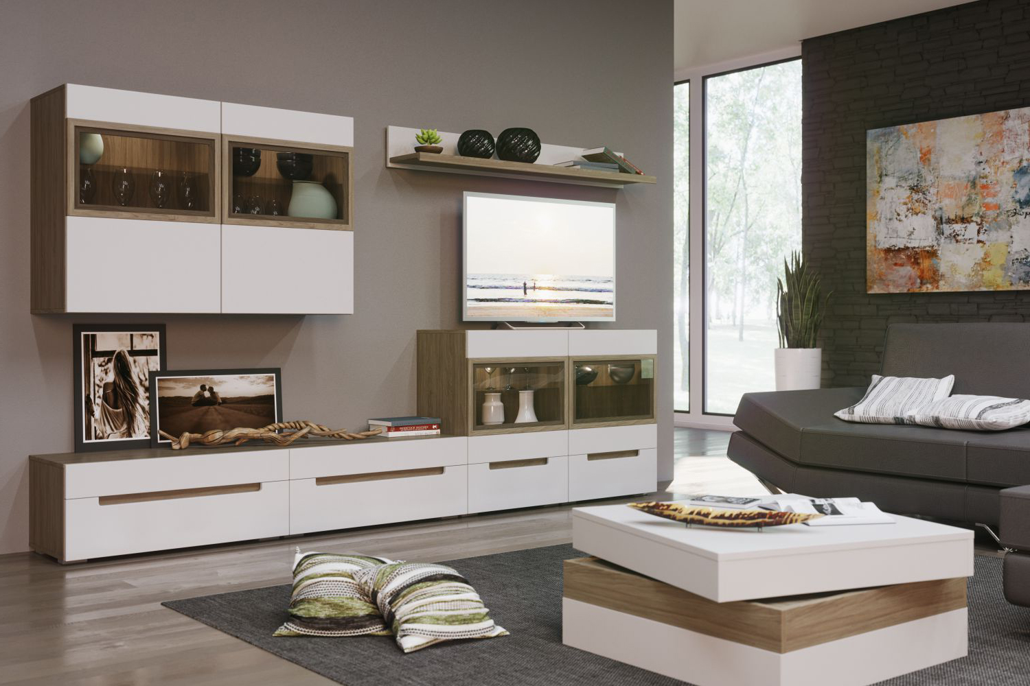 Гостиная в современном минималистичном стиле. Такая мебель универсальна и подойдет интерьерам в стилях эко, скандинавский, минимализм и лофт (в его более «легком» варианте);