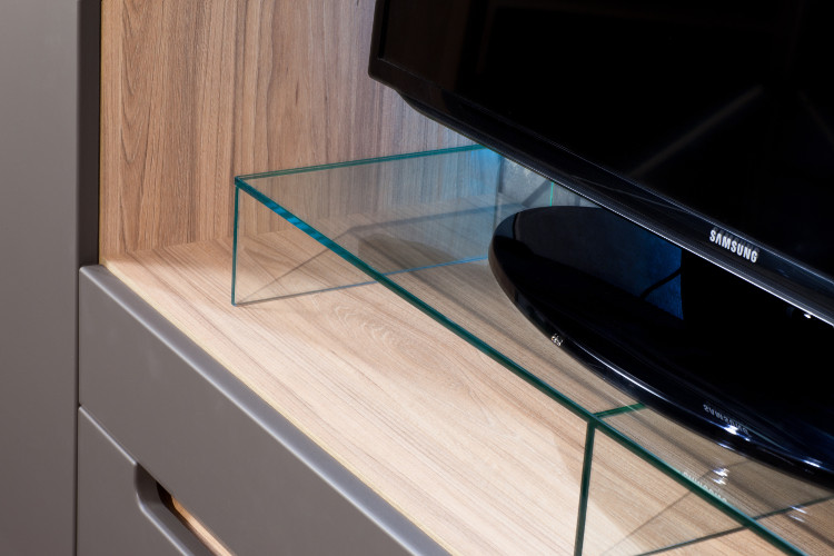 Уникальное стекло StopSol на фасадах шкафов легко скроет содержимое, а при необходимости подчеркнет наполнение шкафа подсветкой (отличный вариант для коллекционеров, которые хотят ненавязчиво показать свои «сокровища»).
