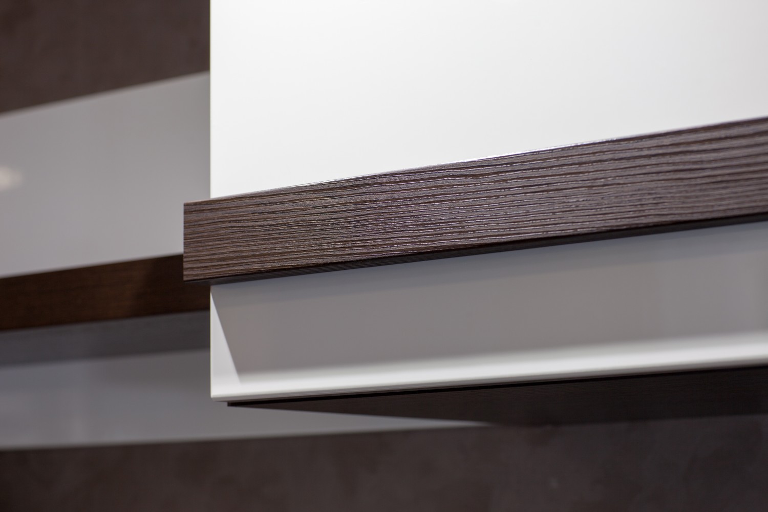 Отличительная особенность коллекции Глейс — декоративная профильная ручка. Она не только служит по прямому назначению (открывать-закрывать двери), но и является графичным акцентом, создающим уникальный рисунок и контраст с глянцевой поверхностью фасадов;