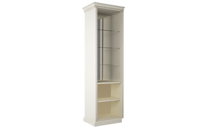 У напольного шкафа со стеклянной вставкой есть зеркало на задней стенке. Это помогает зрительно расширить комнату.