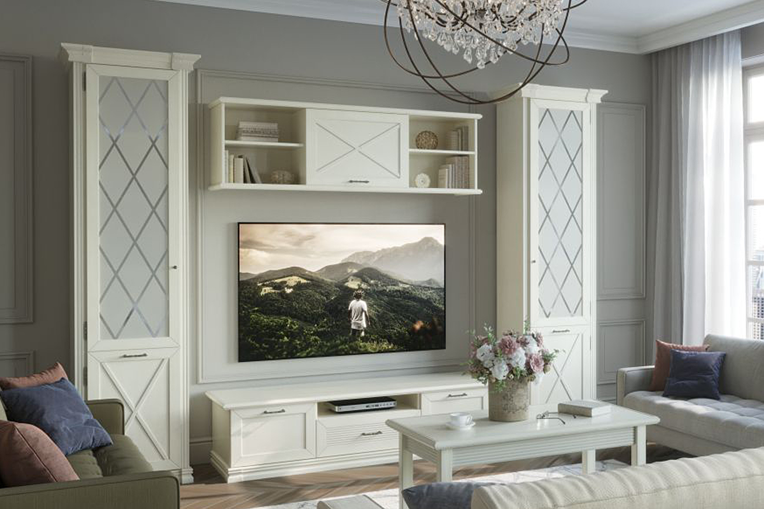 Гостиная в классическом стиле. Кантри — одна из любимых коллекций наших клиентов. Такая мебель подойдет к интерьерам в стилях прованс, кантри или сканди. При создании этой коллекции наш дизайнер вдохновлялась самобытной архитектурой Германии с ее характерной фахверковой системой;