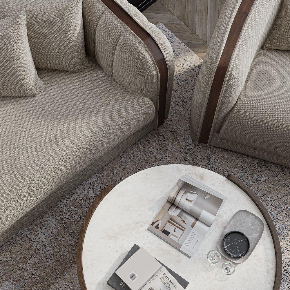 • Сиденья, корпус и боковая часть дивана и кресла— гладкая ткань шенилл Muza 04;