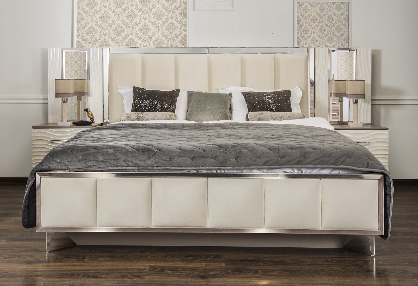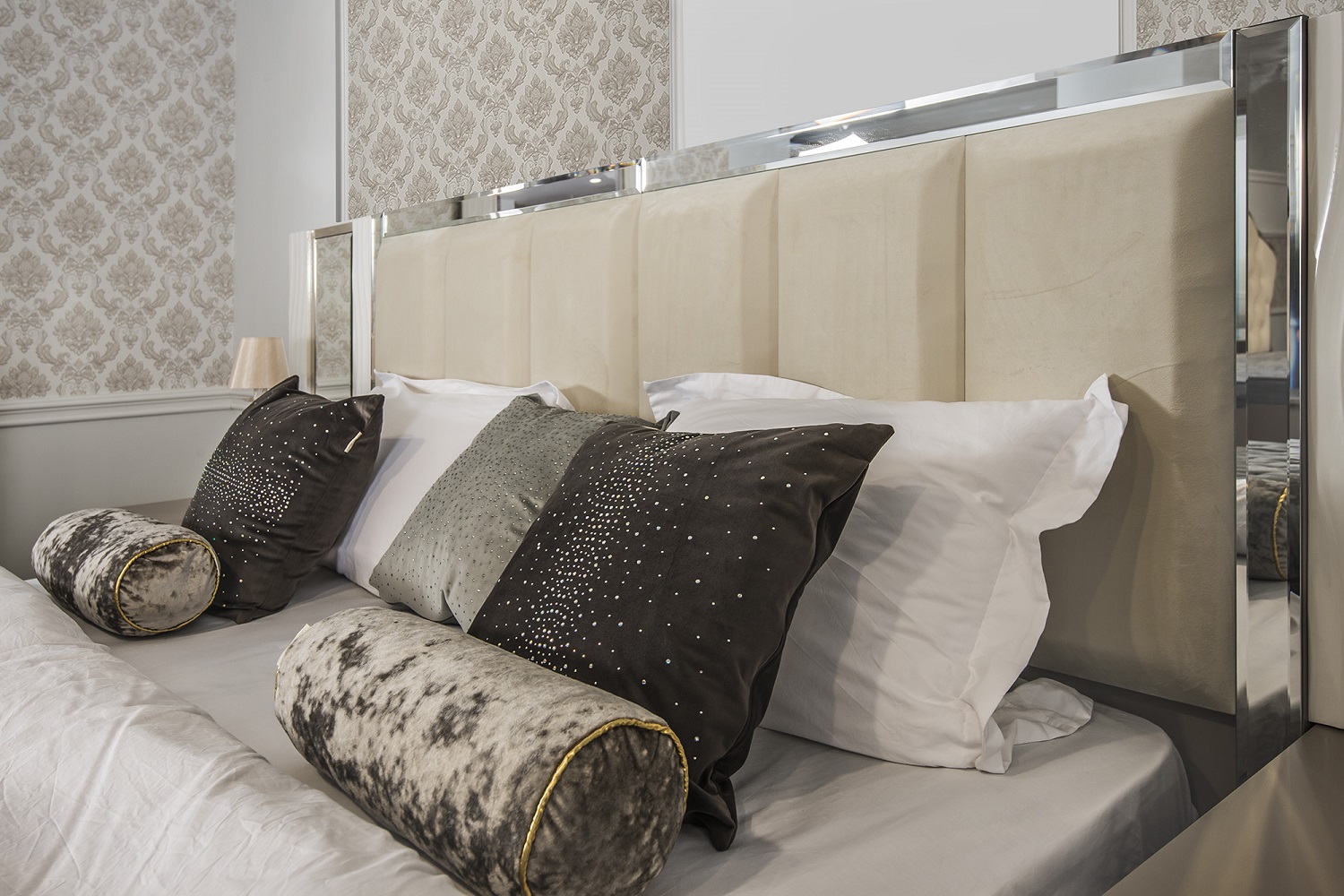 Кровать с декоративными фацетированными зеркальными рамками на изголовье – делает ее центром притяжения!