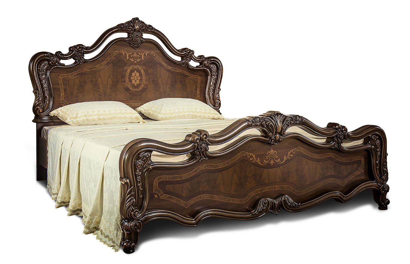 Отдельного внимания заслуживает кровать. Поистине королевское ложе выпускается в двух популярных размерах спального места 160 или 180/200. При желании Вы можете дополнить элегантное изголовье мягкой велюровой вставкой со стразами. Мягкие линии, резные элементы — все это и является Итальянской классикой