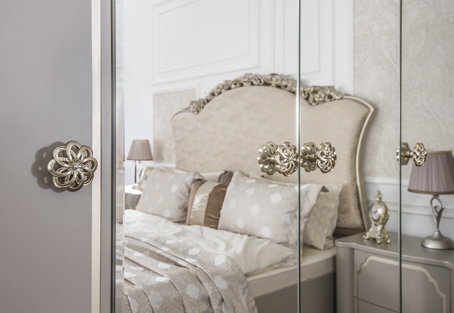 Коллекция Лали выполнена из надёжных экологичных материалов и задекорирована с применением высоких технологий мебельного производства — фасады МДФ с художественной фрезеровкой покрытой поталью цвета Шампань — это тренд мебельного сезона так же, как и итальянская матовая эмаль Серый камень — это универсальные решения, которые украсят интерьер вашей спальни.