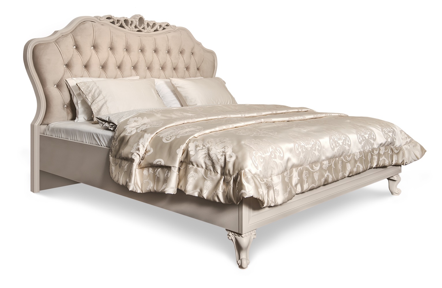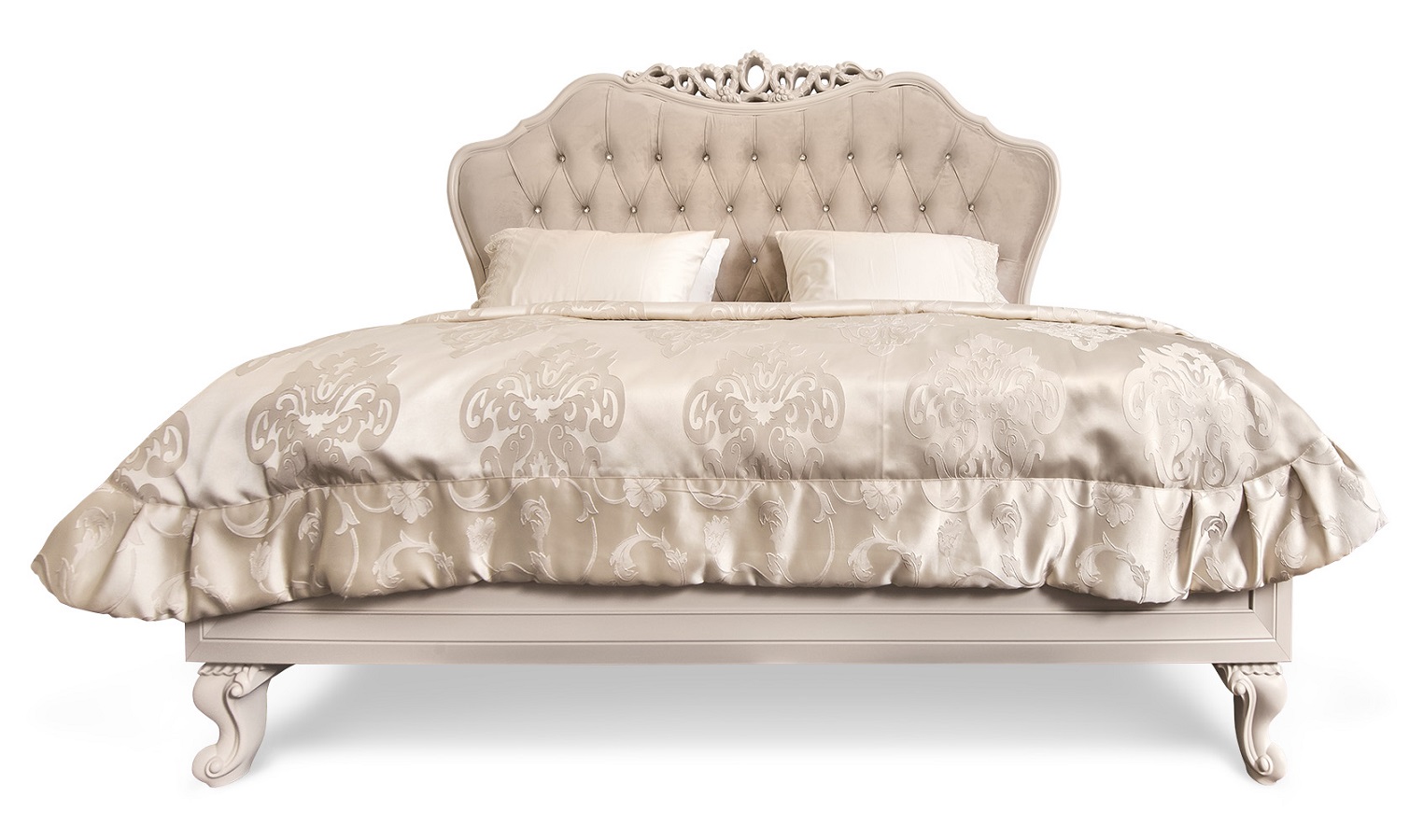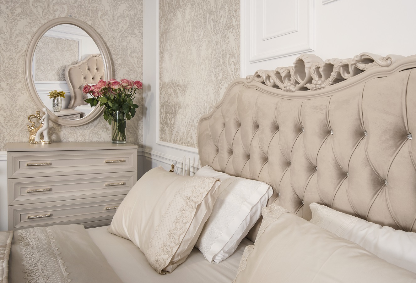 Изголовье: Велюр крем, с каретной стяжкой и кристаллами.