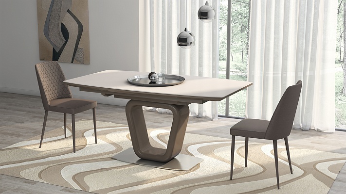 Обтекаемой формы трапеция поддерживает столешницу в форме ""лодочка""