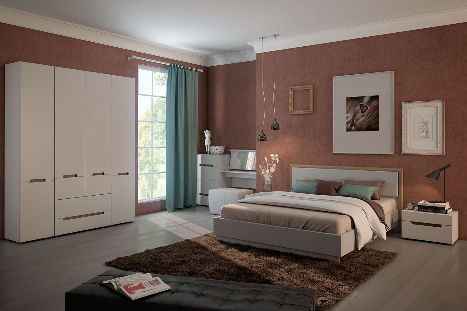 Спальня в современном стиле. Такая мебель универсальна и подойдет интерьерам в стилях эко, скандинавский, минимализм или лофт (в его более легком варианте);