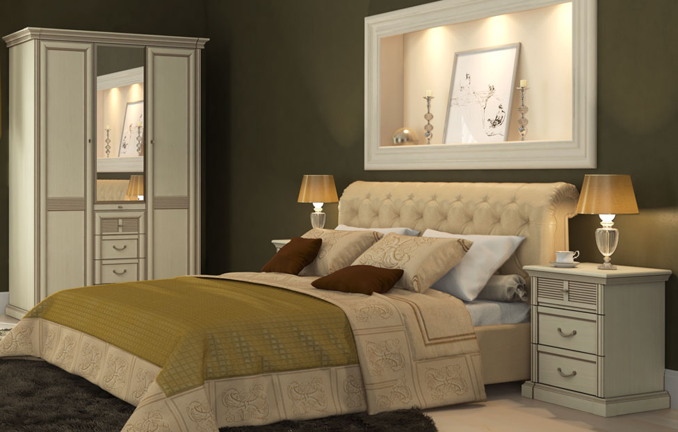 Спальня Изотта понравится тем, кто ценит традиции и хочет подчеркнуть свой вкус и статус. С таким интерьером так и хочется проснуться пораньше, чтобы насладиться утренним кофе, новостями и спокойной, неспешной атмосферой вокруг, а приходить в спальню после тяжелого рабочего дня — настоящее удовольствие!