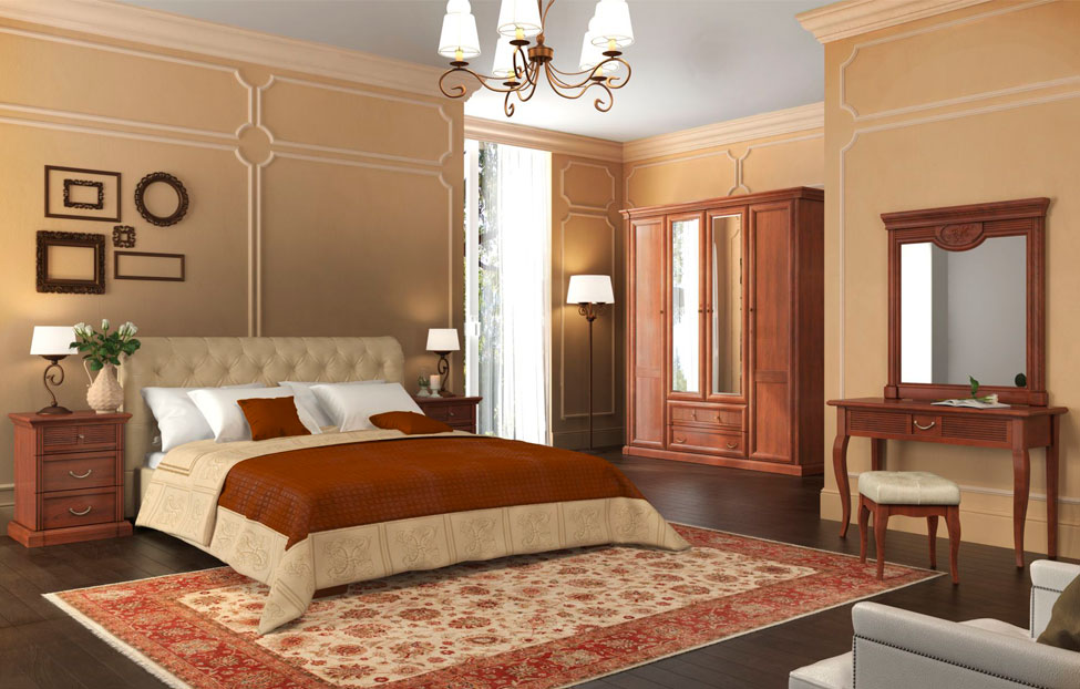 Спальня Изотта понравится тем, кто ценит традиции и хочет подчеркнуть свой вкус и статус. С таким интерьером так и хочется проснуться пораньше, чтобы насладиться утренним кофе, новостями и спокойной, неспешной атмосферой вокруг, а приходить в спальню после тяжелого рабочего дня — настоящее удовольствие!
