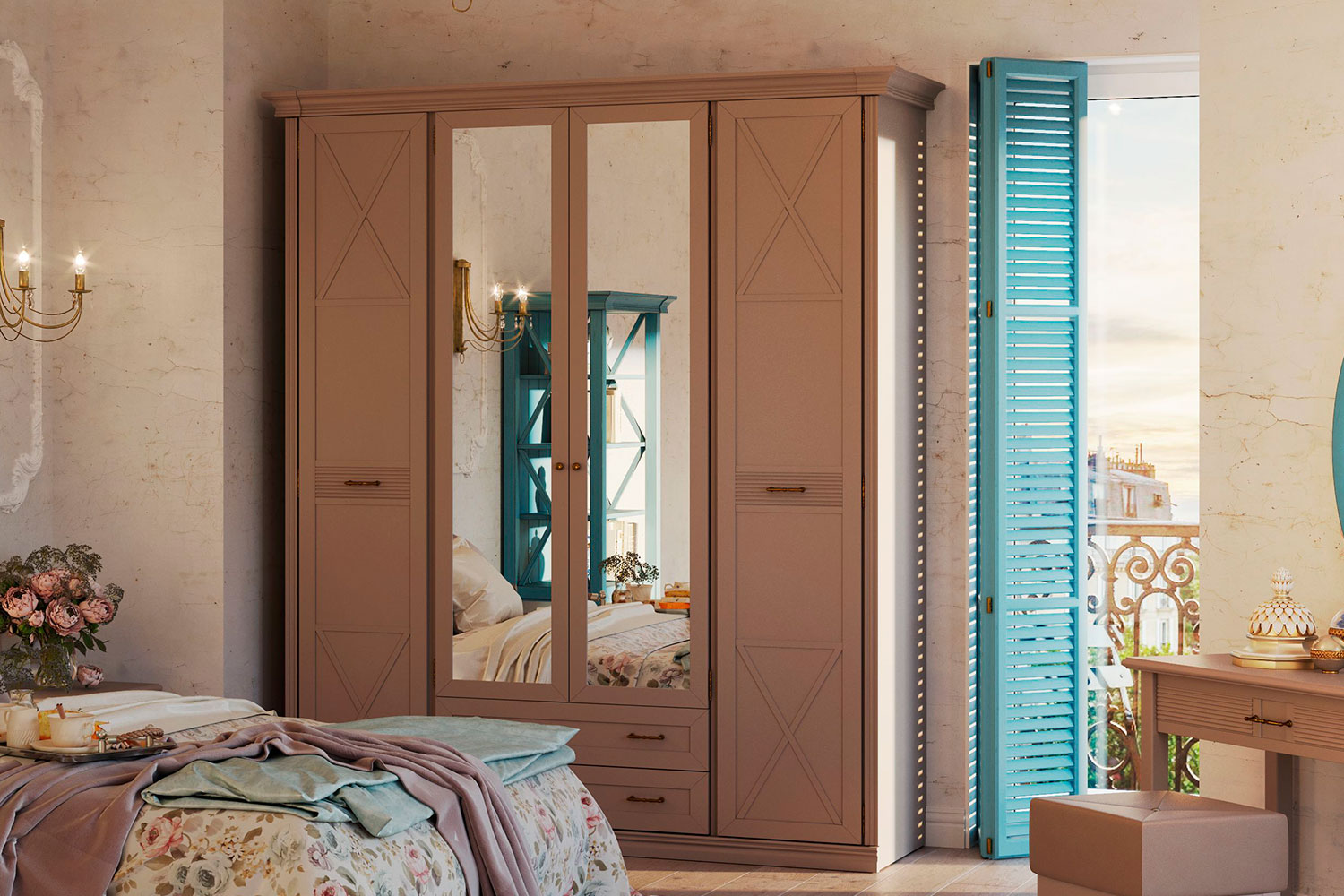 Спальня в классическом стиле. Кантри — одна из любимых коллекций наших клиентов. Такая мебель подойдет к интерьерам в стилях прованс, кантри или сканди. При создании этой коллекции наш дизайнер вдохновлялась самобытной архитектурой Германии с ее характерной фахверковой системой;