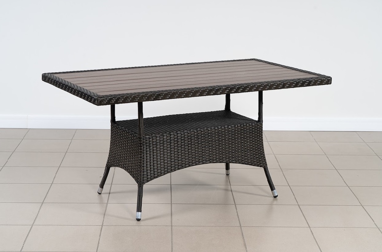 Стол со столешницей из древесно-полимерного композита КРИТ входит в группу квадратных и прямоугольных обеденных столов с плетеным подстольем и изготавливается в следующих размерах: